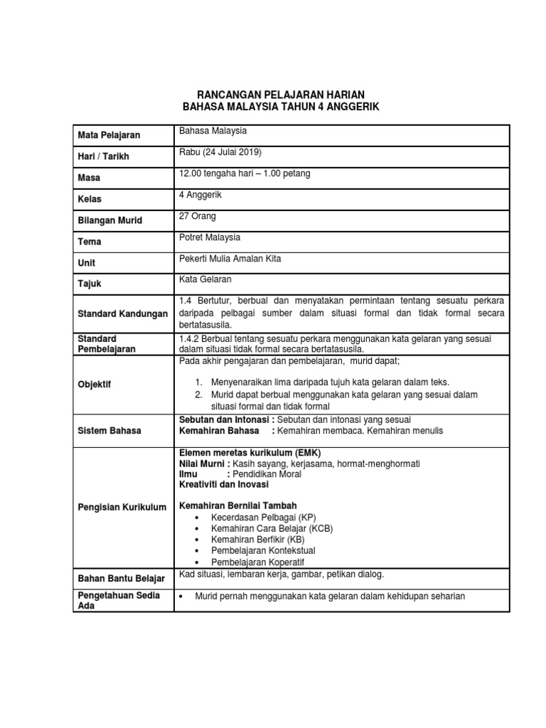 Kata gelaran tahun 4 malaybuit. Bahasa malaysia tahun 4 anggerik. Doc rancangan pelajaran harian bahasa malaysia tahun 6 rudy gafar.